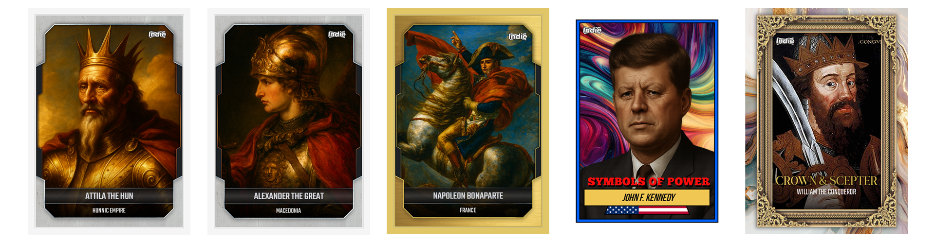 Indie cards are designed using a variety of art styles to portray historical figures like never before, crafted for collectors, educators, and history enthusiasts alike.
