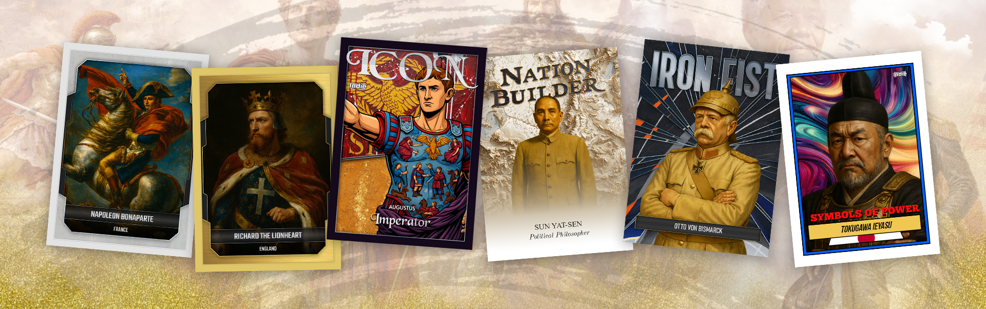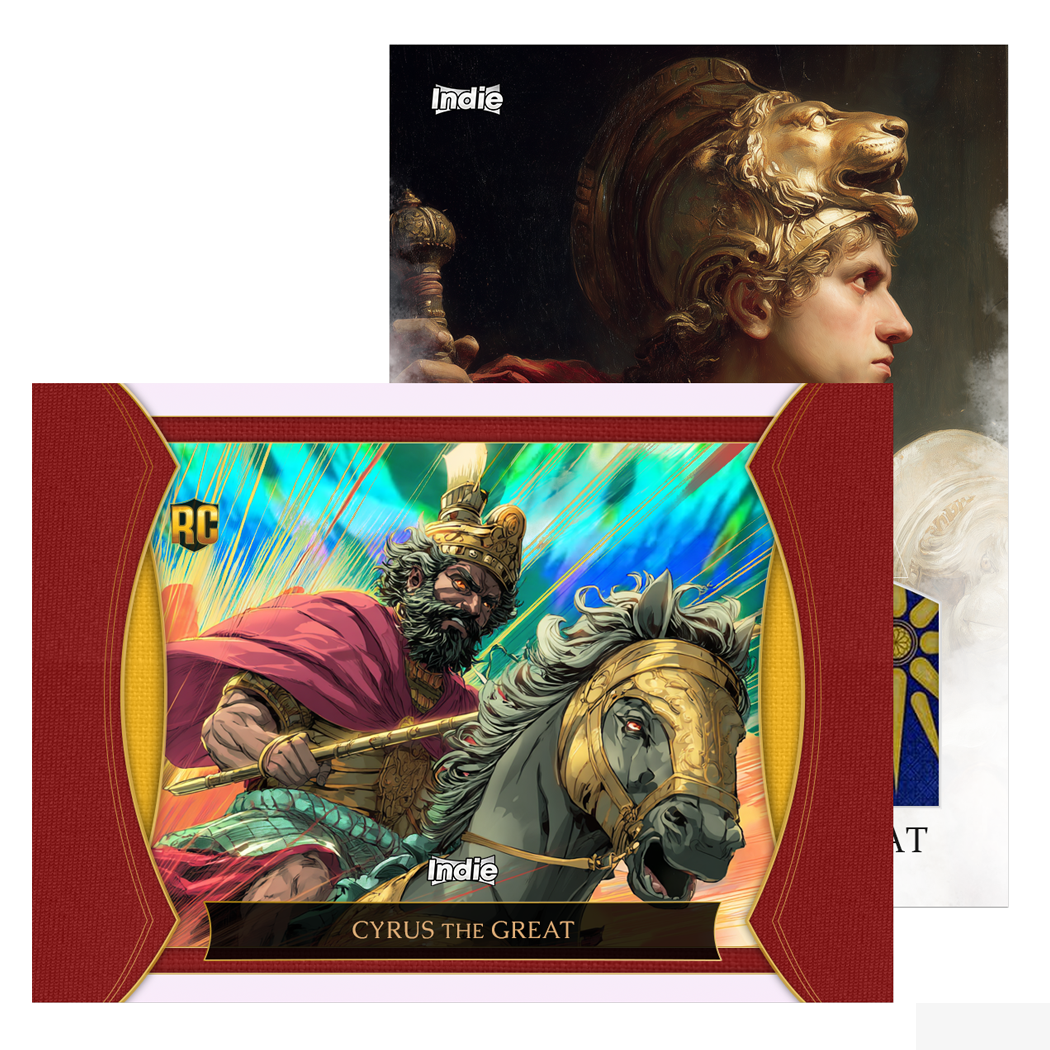 History meets hobby. Indie Historical brings the most influential leaders in world history to life like never before. Collect and chase a diverse base set with a variety of colored and numbered parallels, special themed inserts & rare short printed cards.